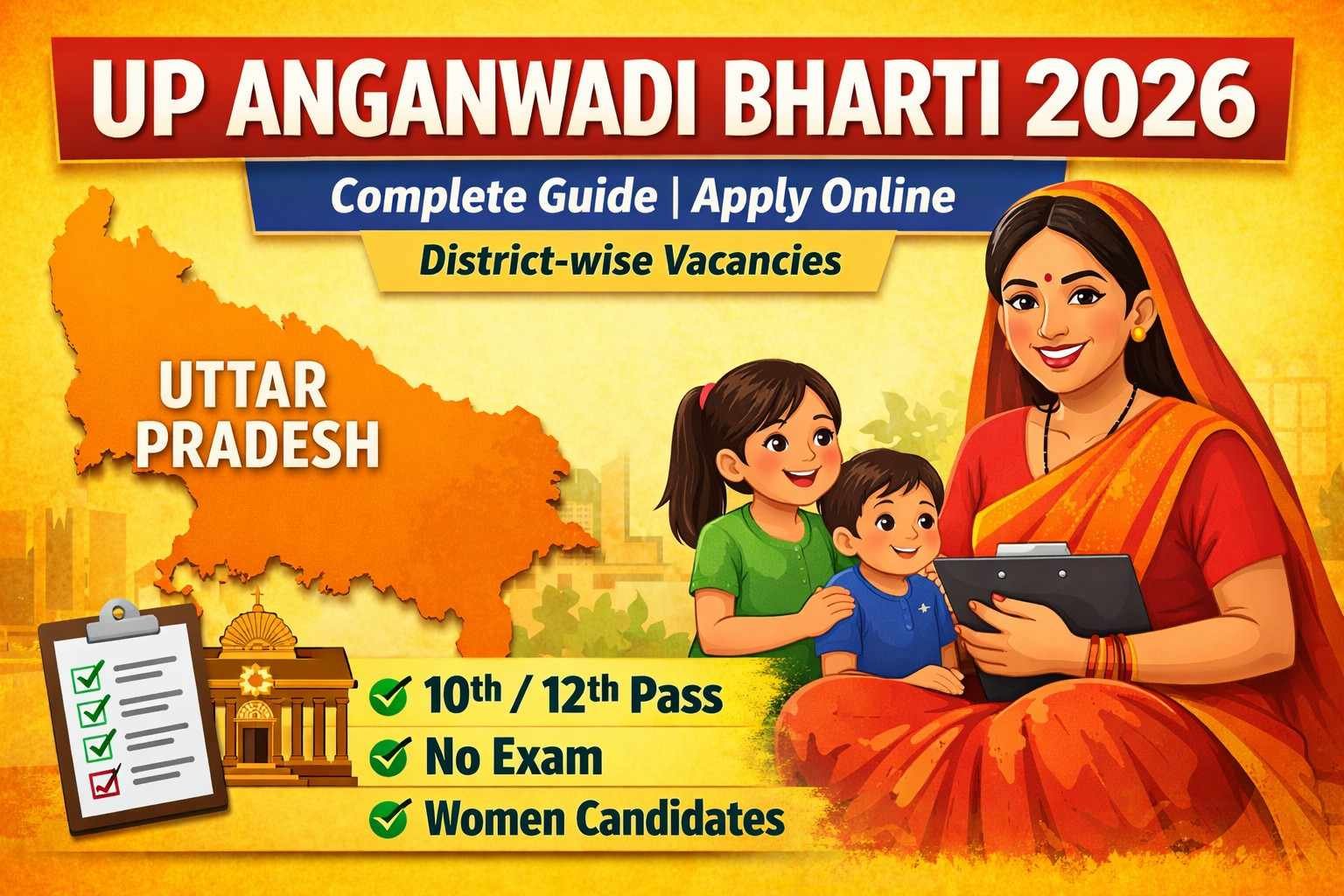 The Uttar Pradesh Anganwadi Recruitment 2026 (UP Anganwadi Bharti 2026) is a golden opportunity for women seeking stable government jobs in the child development and nutrition sector. Conducted under the Integrated Child Development Services (ICDS) scheme by the Women and Child Development Department, Government of Uttar Pradesh, this recruitment fills positions like Anganwadi Worker, Helper, and Mini Worker across various districts.